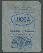 | 83 |  | | | Allen & Ellis. Lucca Tobacco. Cincinnati, Ohio. Hicks TF5-3 1875 1 oz. blue Nov. 1, 1878. VF small faults |