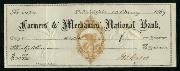 | Lot | | | Description | | 173 |  | | | Scott RN-H3. Philadelphia, Pennsylvania. Farmers' & Mechanics' National Bank bank check. 1869. Black on white. Printed by J.B. Lippincott & Co., Printers. Used, VF