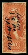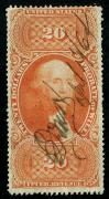 | 56 |  | | | Scott R98a 1862-71 $20 Conveyance, orange bold manscript cancel, VF |