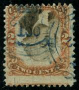 | 72 |  | | | Scott R135b 1871-72 2c orange & black inverted center, cut cancel, F tiny hole in cut cancel |