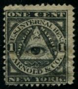 | 87 |  | | | Arnold & Co. New York, N.Y. Scott RO14b 1871-77 1c black on silk F small faults |