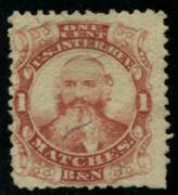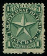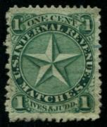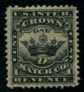 | 95 |  | | | Crown Match Co. Blenbeulah, Wisconsin Scott RO67b 1871-77 1c black on silk VF few short perfs |