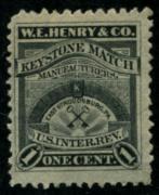 | 101 |  | | | W.E. Henry & Co., Keystone Match Manufacturers. East Stroudsburg, Pennsylvania Scott RO109d 1878-83 1c black on watermarked F-VF thin spot |