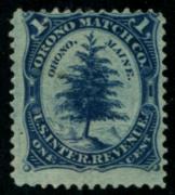 | 106 |  | | | Orono Match Co. Orono, Maine Scott RO141b 1871-77 1c blue on silk F tiny sealed tear |