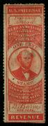 | 112 |  | | | Demas Barnes. New York, N.Y. Scott RS23a 1862-71 4c black on old F-VF clipped perfs at top and small flaws |