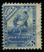 | 114 |  | | | Wm. E. Clarke, Hunt's Remedy. Providence, Rhode Island Scott RS56d 1878-83 3c blue on watermarked F small sealed tear and light soiling |