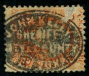 John Kelly, Sheriff. New York, N.Y. Scott R15c 1862-71 2c U.S. Internal Revenue, orange black SON negative oval handstamp, F small abrasion