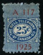 | Item Status  | | | | | 187 |  | | | Bell Telephone Co. of Canada Van Dam TBT84 1925 25c blue mint, F-VF usual rough perfs |
