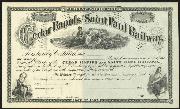 | | | Item Status  | | | | | 199 |  | | | Cedar Rapids and Saint Paul Railway stock certificate. Cedar Rapids, Iowa. 18__. Several vignettes. Unissued, VF |
