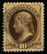 | Item Status  | | | | | 150 |  | | | Scott 188 1879 10c brown, with secret mark (Thomas Jefferson) used, large margins, XF |