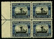 | Item Status  | | | | | 155 |  | | | Norse-American Issue Scott 621 1925 5c dark blue & black left margin arrow block of four, mint, NH, VF |