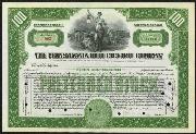Pennsylvania-Ohio Electric Company stock certificate for 100 shares. 19__. Vignette of electricity, generator and street railway car. American Bank Note Co. Philadelphia imprint. Cancelled, not issued, VF