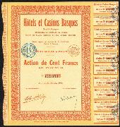 | 264 |  | | | Hotels et Casinos Basques stock certificate. Paris. 1928. Issued, VF |
