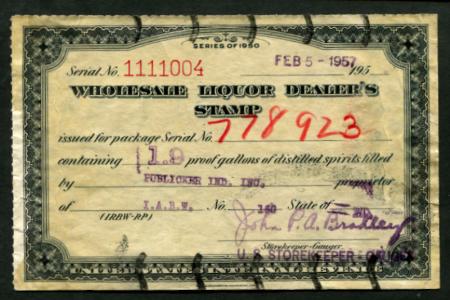 Wholesale Liquor Dealers Stamp, Series of 1950, VF varnished and small faults