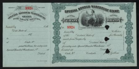 Grape Brandy Warehouse 1 punched remainder, F-VF