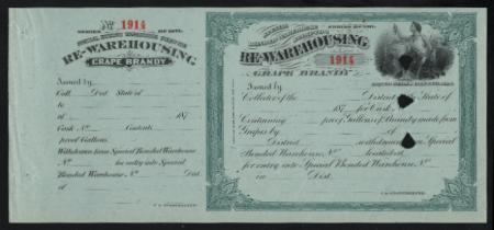 Grape Brandy Re-Warehousing 1 punched remainder, VF crease