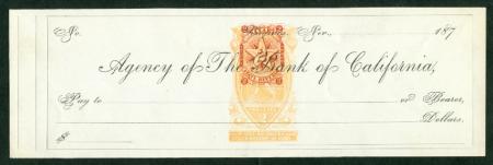 RN-B16a. Virginia, Nevada. Agency of The Bank of California bank check. 187_. Black on white. Unused, VF
