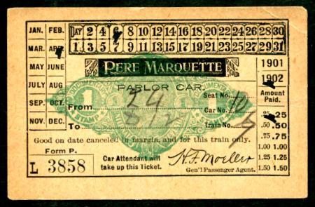RN-X5a Detroit, Michigan. Pere Marquette Railroad Co. parlor car ticket, 1901-02