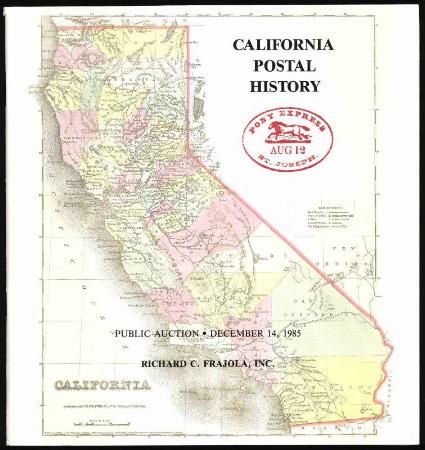 California Postal History by Richard C. Frajola. Auction sale of a wonderful collection. 216 lots well illustrated in color. Includes prices realized. 1985. Card covers. 61 pages. Used, VF