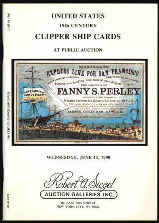 United States 19th Century Clipper Ship Cards, Sale 725. by Robert A. Siegel Auction Galleries, Inc. The finest collection ever formed. 415 lots, each item illustrated in black & white. Includes prices realized. 1990. Card covers. 120 pages. Used, VF