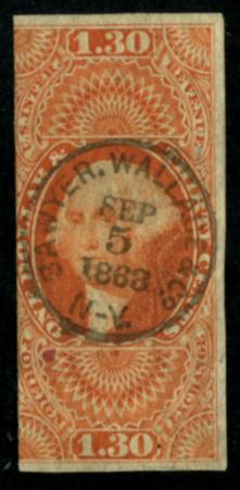 Sawyer, Wallace & Co. black SON cds, F corner crease and tiny hole at bottom