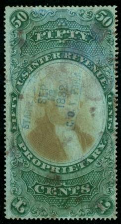 RB8b Starkey & Palen blue handstamp cancel, F stained and discolored