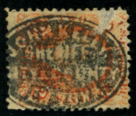 John Kelly, Sheriff. New York, N.Y. R15c black SON negative oval handstamp, F small abrasion | Description |  | John Kelly, Sheriff. New York, N.Y. Scott R15c 1862-71 2c U.S. Internal Revenue, orange black SON negative oval handstamp, F small abrasion