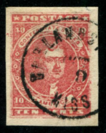 CONFEDERATE STATES 5a used, black Mississippi cds, VF thin