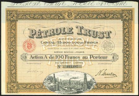 FRANCE Petrole Trust stock certificate. Paris. 1924