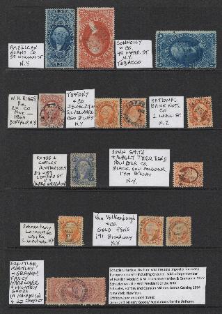 FIRST ISSUE Revenue stamps with New York handstamp cancels, collection of 13 various. Includes interesting companies such as American Guano Co., Tiffany & Co., and more. All are identified. F-VF the R87 has added perforations