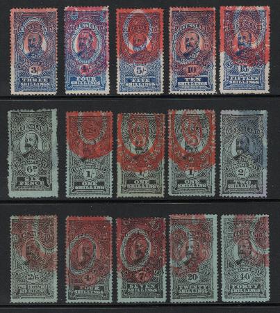 AUSTRALIA - QUEENSLAND Impressed Duty revenue stamps, 15 various