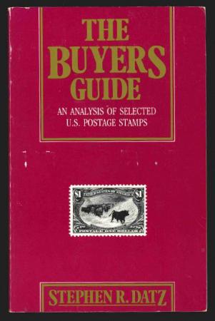 The Buyers Guide, Get the Most for Your Stamp Collecting Dollar! by Stephen R. Datz. An analysis of selected U.S. stamps. 1992. First edition. Card covers. 172 pages. Used, VF tiny cover flaws