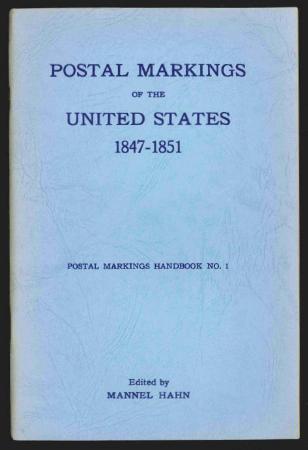 Postal Markings of the United States 1847-1851 edited by Mannel Hahn. An illustrated guide to the various postmarks. 1938. Card covers. viii, 42 pages. Used, Fine cover soiling