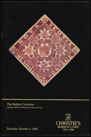 The Halifax Collection, Stamps and Postal History of Nova Scotia by Christie's Robson Lowe. A wonderful collection, 248 lots with color and black & white illustrations. 1984. Card covers. 86 pages. Used, VF