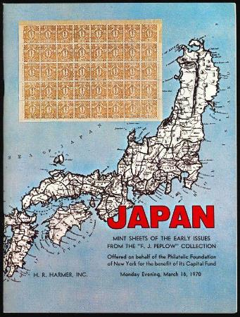 JAPAN Mint Sheets of the Early Issues from the F.J. Peplow Collection by H.R. Harmer Inc. Sale 1947. A fascinating auction of rare sheets. 117 lots, well illustrated. Includes prices realized. 1970. Card covers. 92 pages. Used, VF