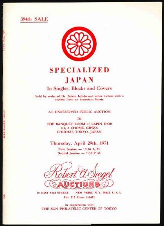 Specialized Japan in Singles, Blocks and Covers by Robert A. Siegel Auction Galleries, Inc. An interesting offering of stamps and postal history. 326 lots, well illustrated with prices realized. 1971. Card covers. 24 pages.