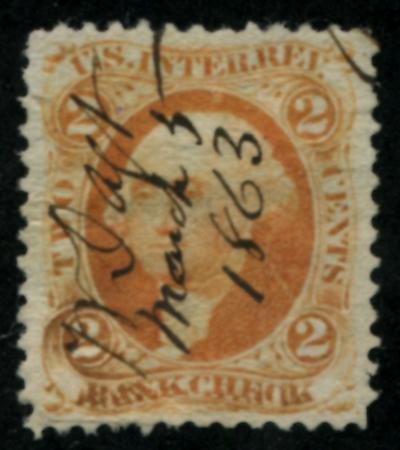 1862-71 2c Bank Check, orange