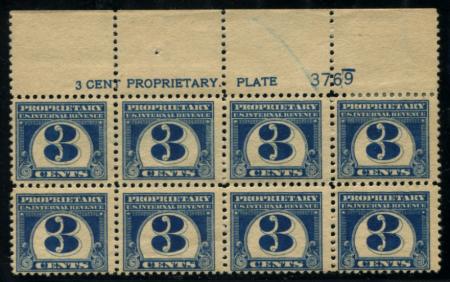 RB67 top plate No. 3769 block of six, mint, F small hinge reinfocement at top right
