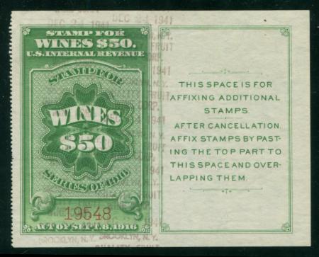 RE107E Serial No. 19548, Quality Fruit Wine Corp. Brooklyn, N.Y. black h/s cancel. VF couple short perfs and light creases