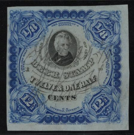 1871 1/8 barrel, 12-1/2c blue & black, gray silk paper (Andrew Jackson)