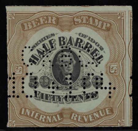 1902 1/2 barrel, 50c brown & black, pale green paper (Thomas Jefferson)
