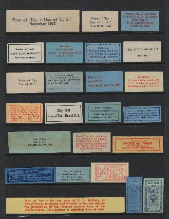 Cigarette and Tobacco Free of Tax Closures, 24 different, used, F-VF some small faults