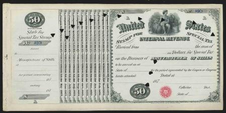 Manufacturer of Stills 1873 $50 black & red (gray) punched remainder, VF