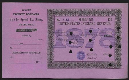 One Still 1878 1878 $20 black & blue (purple), punched remainder, VF