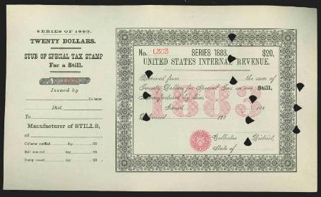 One Still 1883 $20 black & red (pale green) punched remainder, VF