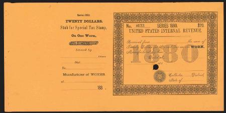 One Worm 1880 $20 black (orange) punched remainder, VF