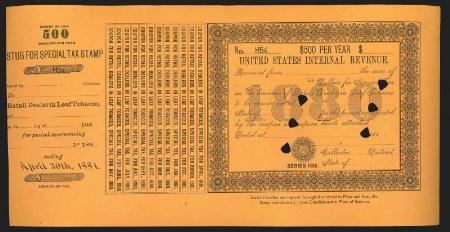 Retail Dealer in Leaf Tobacco 1880 $500 black (orange) punched remainder, VF