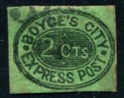 | Lot | | | Description | | 105 |  | | | Boyce's City Express Post, New York, N.Y. Scott 19L1 1852 2c black, green used, VF thins. PF Certificate |