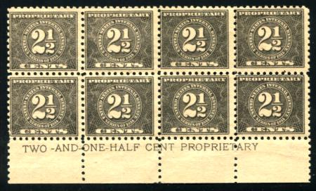block of eight, TWO-AND-ONE-HALF CENT PROPRIETARY, mint, F