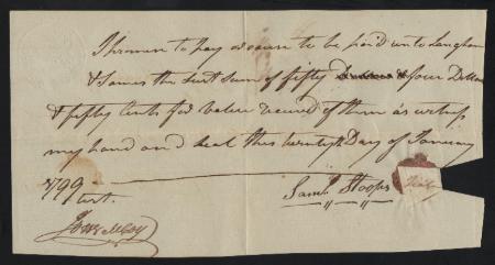 Bluish laid paper. Promissory note. 1799. Sharp strike, VF